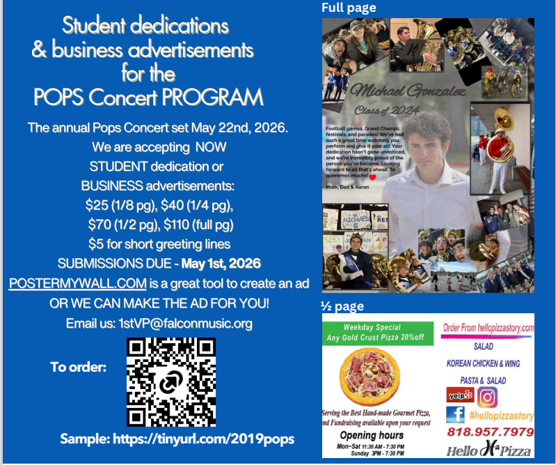 See FLYER for more details. Order student dedications and business advertisements HERE.